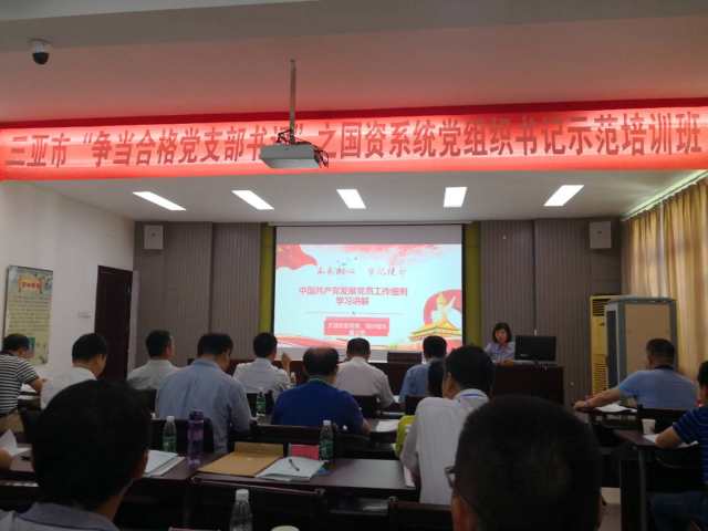 2018年5月15日上午,由市委組織部組織的三亞市“爭當合格黨支部書記”之國資系統(tǒng)黨組織書記示范培訓班在黨校正式開班,培訓為期3天,國資委領(lǐng)導全程跟班,海南天涯水業(yè)(集團)公司16名黨組織書記全部參訓并認真學完了每一節(jié)課。
