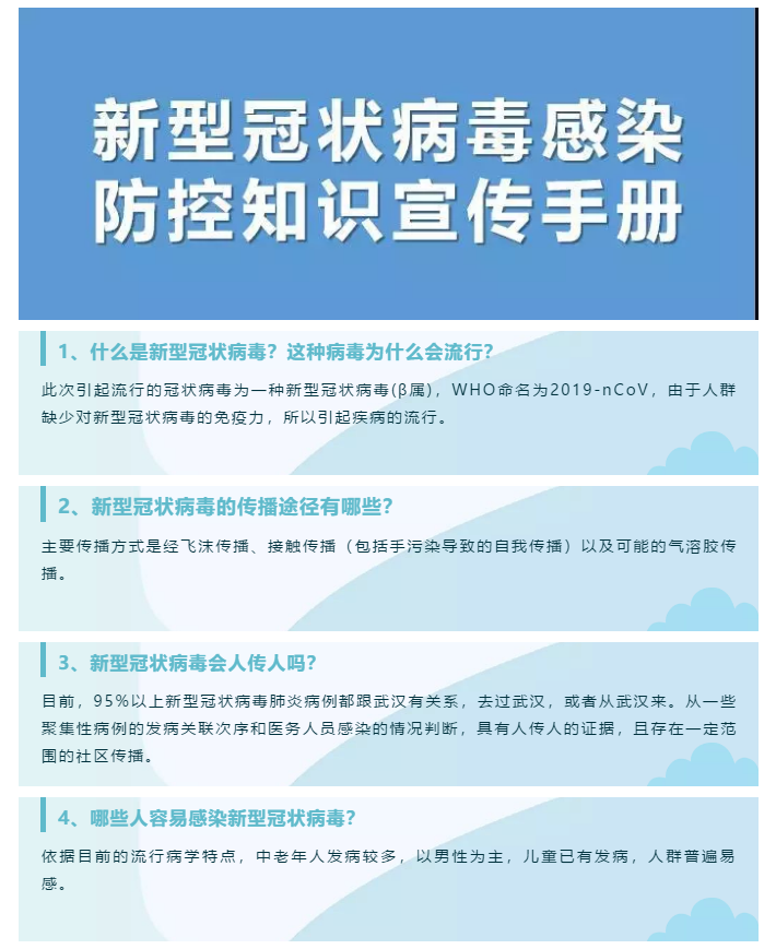 新型冠狀病毒感染防控知識宣傳手冊