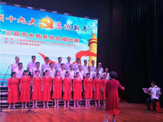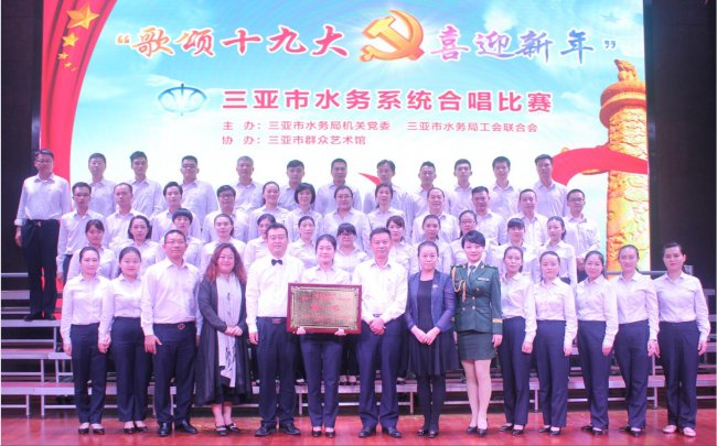 2017年12月27日,我司參加了在市群藝館舉辦的三亞市水務系統(tǒng)“歌頌十九大 喜迎新年”合唱比賽。經(jīng)過激烈角逐和專家評分,我司合唱團演唱的歌曲《祖國不會忘記》和《在燦爛的陽光下》以積極向上的精神風貌和富有極強感染力的藝術(shù)效果奪得桂冠。